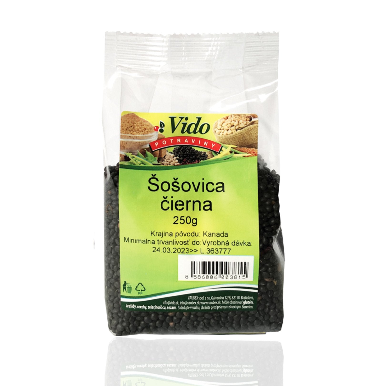 Šošovica čierna 250g VIDO odroda BELUGA, nonGMO, sa nazýva aj kaviárová. Má jemnú orieškovú chuť. Obsahuje množstvo antioxidantov, ktoré chránia organizmus pred voľnými radikálmi a starnutím buniek. Čierna šošovica je známa najvyšším obsahom bielkovín spomedzi strukovín. Prospieva kardiovaskulárnemu systému. Je prevenciou rakoviny hrubého čreva, reguluje činnosť čriev. Vhodná pre diabetikov. Je vhodná ako príloha k jedlám i do šalátov.